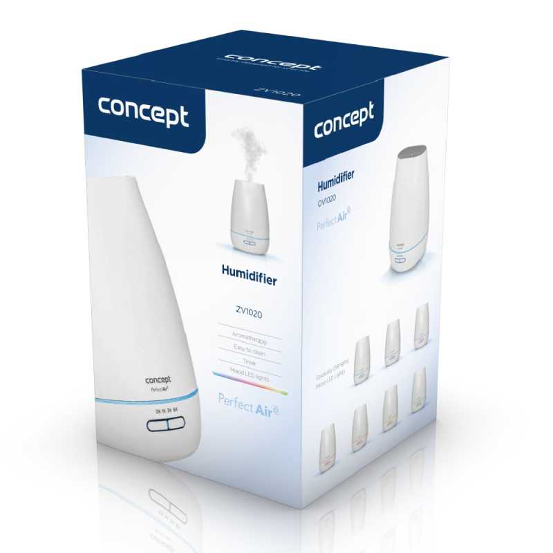 Concept ZV1020, 2 az 1-ben párásító és aroma diffúzor, segíti megalkotni az ideális és egészséges szobai levegőt otthonában. Stílusos, letisztult, modern kialakítás és nagyon halk működés jellemzi.