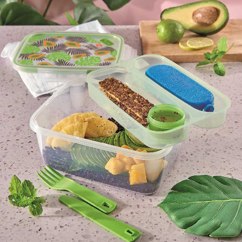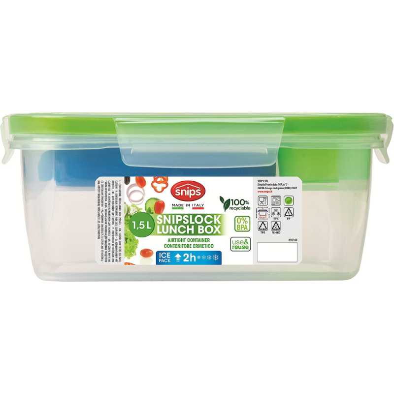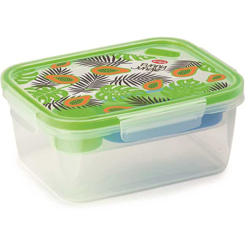 Snips 033102 1,5 literes ételhordó doboz szett, dzsungel mintával. 4 Clipses biztonsági záródással. Tartozéka: jégakku, műanyag villa és kés, szósztároló. Mikrózható és hűtőben is tárolható.