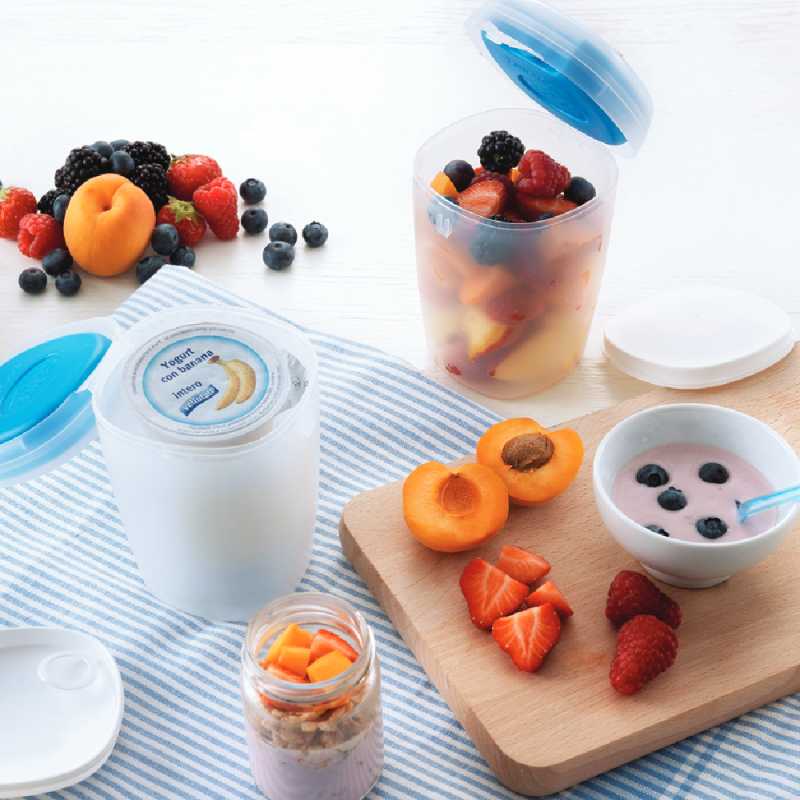 A Snips 0,5 literes joghurt és gyümölcstartó pohár segítségével könnyedén magunkkal vihetjük munkába kedvenc joghurtunkat, gyümölcseinket. A tároló tetejébe helyezhető jégakkunak köszönhetően hidegen tarthatjuk a benne lévő élelmiszert.
