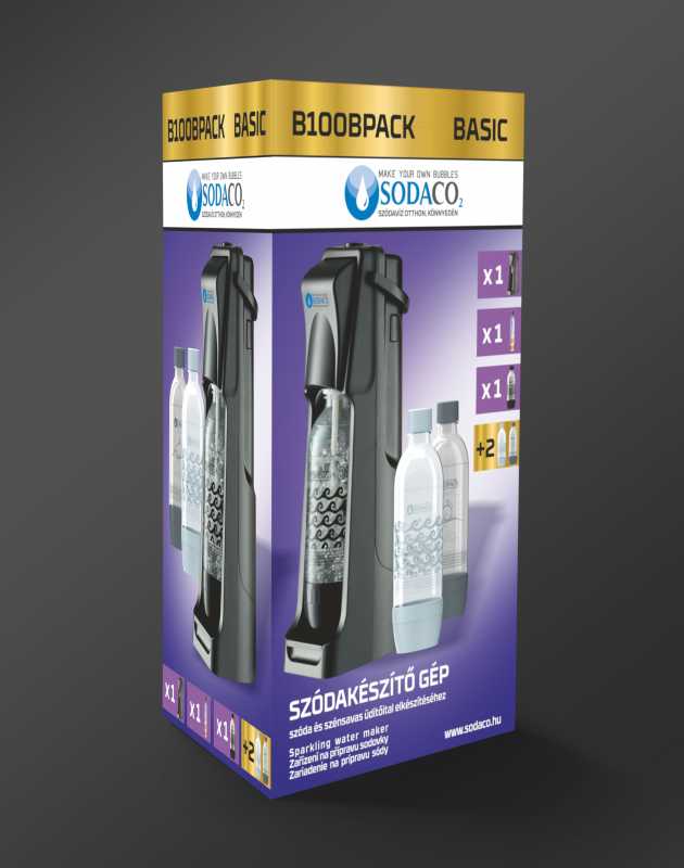 A SodaCo Basic típusú, fekete színű, műanyag otthoni szódagépe. Használatával pillanatok alatt friss, szénsavas vizet készíthetünk. Környezetbarát és takarékos választás, mert nem károsítjuk környezetünket a bolti ásványvizek hazacipeléséből származó sok műanyag hulladékkal. Ez a szódagép a háztartás minden szegletében megtalálja helyét. A legjobb választás, ha van otthon egy ilyen!