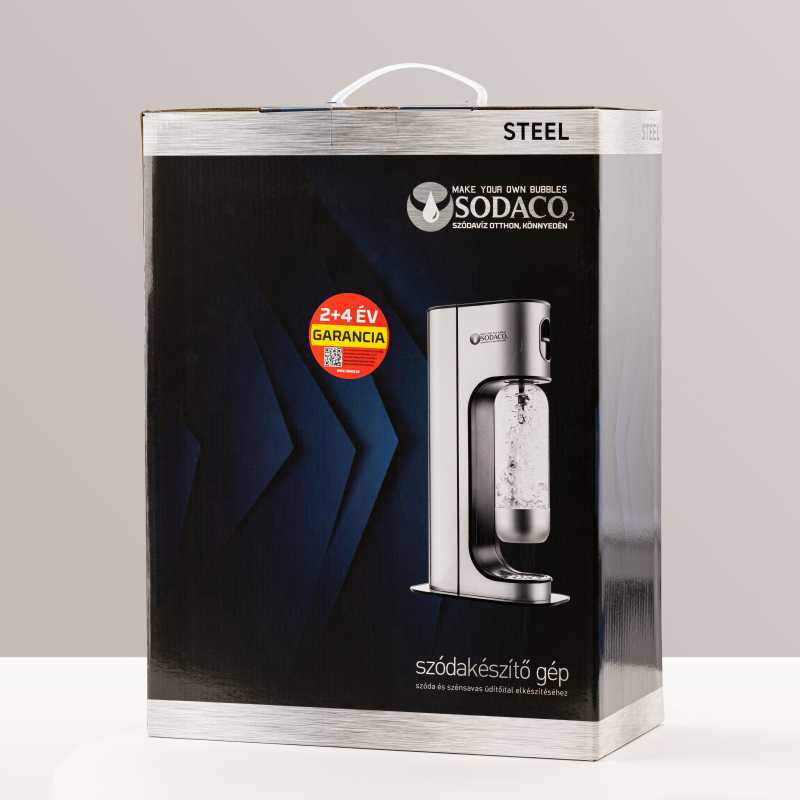 A Sodaco elegáns Steel rozsdamentes, bajonettzáras készüléke minden igényt kielégít. Használatával pillanatok alatt friss, szénsavas vizet készíthetünk. Környezetbarát és gazdaságos megoldás, mert megkíméljük környezetünket a bolti ásványvizek vételéből keletkező temérdek műanyag hulladéktól. Modern, igényes és megbízható, ezek a legújabb Sodaco szódagép ismérvei.