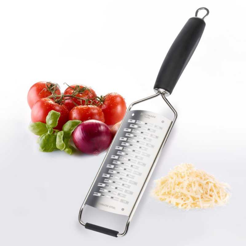 A praktikus Technicus Square kézi reszelő precízvágással rendelkezik. Segítségével könnyedén készíthet reszelményt kemény sajtokból, zöldségekből, gyümölcsökből vagy csokoládéból. A csúszásmentes talp és az ergonomikusan kialakított, puha tapintású markolat biztos fogást biztosít.