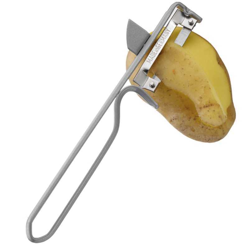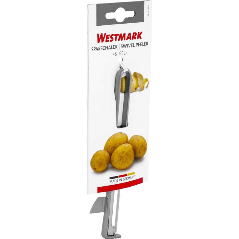 A Westmark univerzális hámozó az ideális segítő a konyhában. A kerek vagy hosszúkás gyümölcsök és zöldségek, például burgonya, uborka, spárga, alma stb. hámozása pillanatok alatt végbemegy. A forgó pengés tökéletesen alkalmazkodik az étel körvonalaihoz és garantálja a gazdaságos hámozást, minimális veszteséggel. Ezen vágópengékkel gyorsan és könnyen eltávolíthatja a sérült részeket, például a burgonyán lévő úgynevezett 'szemeket'.