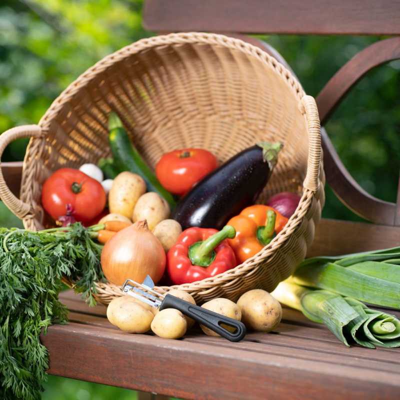Az univerzális Westmark Gentle sorozatából származó hámozó a balkezes felhasználók ideális konyhai segítője. Pillanatok alatt meghámozhat vele kerek vagy hosszúkás gyümölcsötket, zöldségeket, például burgonyát, uborkát, spárgát, almát és sok mást. A forgatható penge alkalmazkodik az élelmiszer kontúrjához, így gazdaságos hámozást és maimális hozamot biztosít a gyümölcsök és zöldségek hámozásához. A kihegyezett vágóval gyorsan és egyszerűen eltávolíthatja a sérült részeket, például a burgonya 'szemeit' vagy a sérült részekhez. A hámozó kényelmesen helyezkedik el a kézben és az akasztószemnek köszönhetően helytakarékosan tárolható.