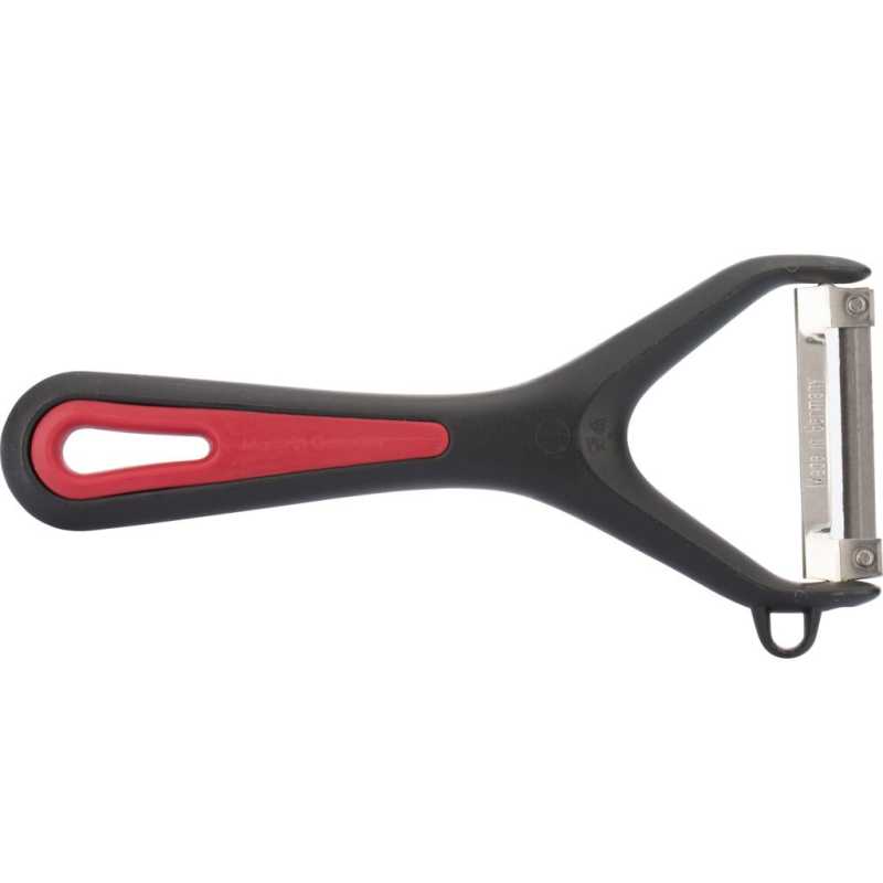 A Westmark Gallant zöldség - és spárgahámozó mozgatható pengével alkalmas kerek vagy hosszúkás gyümölcsök és zöldségek, például spárga, uborka, burgonya és alma hámozására. Mozgatható pengéjének köszönhetően tökéletesen alkalmazkodik minden kontúrhoz; a vágóeszköz segít eltávolítani a sérült és/vagy csúnya foltokat. A hámozó a speciális, komfortos, puha tapintású fogantyúnak köszönhetően tökéletesen illeszkedik a kézbe és az akasztólyuknak köszönhetően helytakarékosan tárolható.