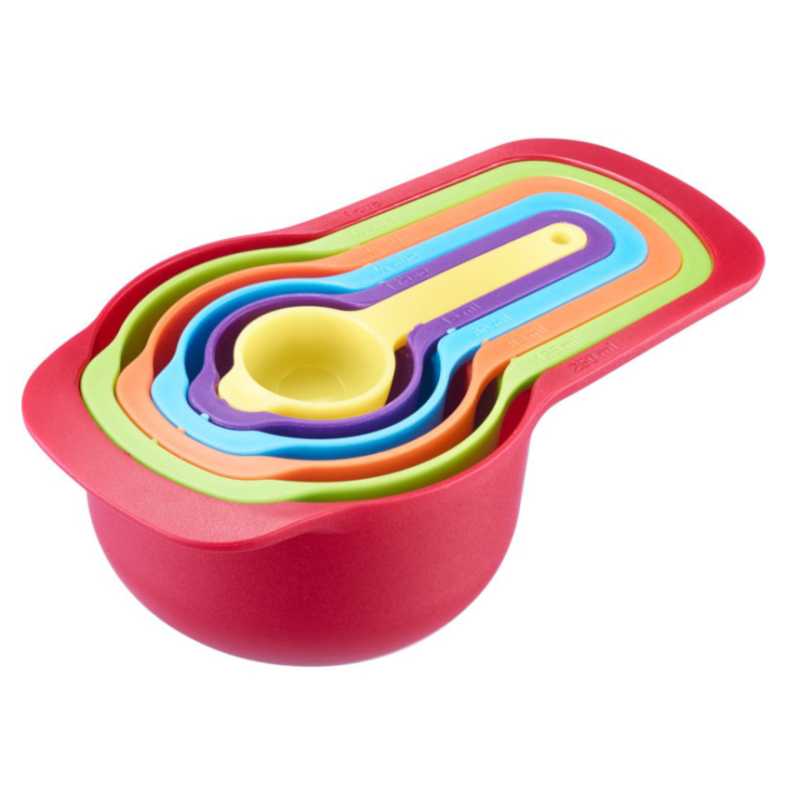 6 darabos mérőkanál készlet a könnyű méréshez főzés és sütés közben - a következő méretekben kapható: 7,5 ml ( 1/2 evőkanál) - 15 ml (1 evőkanál) - 60 ml ( 1/4 csésze) - 85 ml ( 1/3 csésze) - 125 ml ( 1/2 csésze) - 250 ml (1 csésze) - a mérőkanalak helytakarékosan egymásba kattannak.