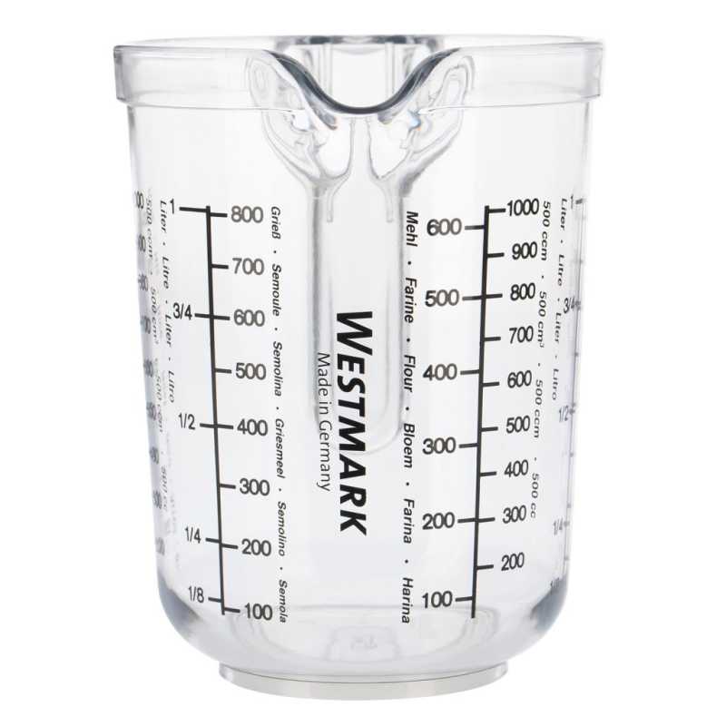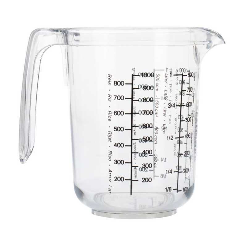 Ezzel a masszív mérőedénnyel gyorsan és pontosan kimérheti a sütési hozzávalókat a skálának és a nagyméretű, 1 literes űrtartalomnak köszönhetően.