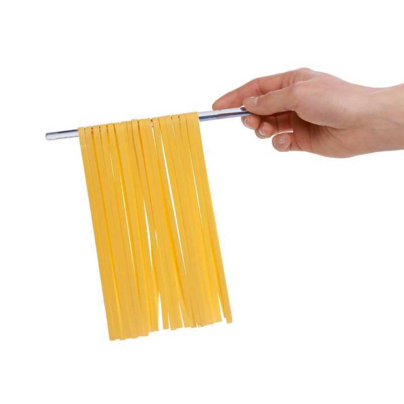 A tésztaszárító közepében található egy rúd, amivel könnyedén és praktikusan fel lehet lógatni a tésztagéppel elkészített tészta szálakat a szárítóra.