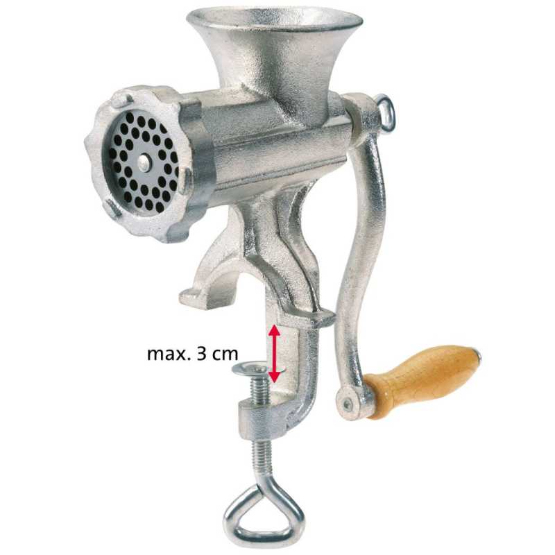 A Westmark 5-ös méretű darálót perforált tárcsával és sütemény tészta kinyomó tartozékkal találja a dobozban, amelyek könnyen nyitható rögzítőgyűrű segítségével könnyen a darálóhoz csatlakoztatható. A hús, a hal, a zöldség vagy a tészta gyorsan és tisztán darálható. A kurblival minimális erőfeszítéssel működtetheti a darálót. A csavaros rögzítővel történő rögzítésnek köszönhetően szilárdan ül minden asztalon és munkafelületen. A műanyag alátét megakadályozza a munkafelület megkarcolódását.