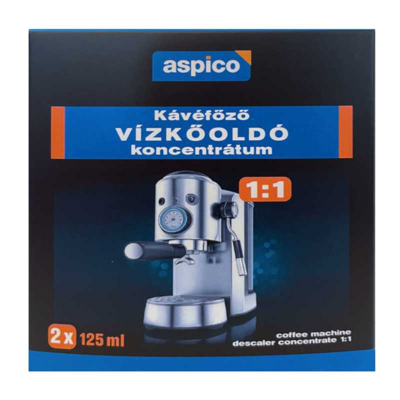 Használat előtt olvassa el a készülék gyártójának vízkő eltávolítással kapcsolatos utasításait. Kávéfőző: Keverjen el 125ml vízkőoldó folyadékot megegyező mennyiségű vízzel, majd öntse a készülék víztartályába. Kezdje meg a vízkőmentesítési ciklust a kávéfőző utasítása szerint. A ciklus lejárta után többször öblítse át a készüléket tiszta vízzel.
