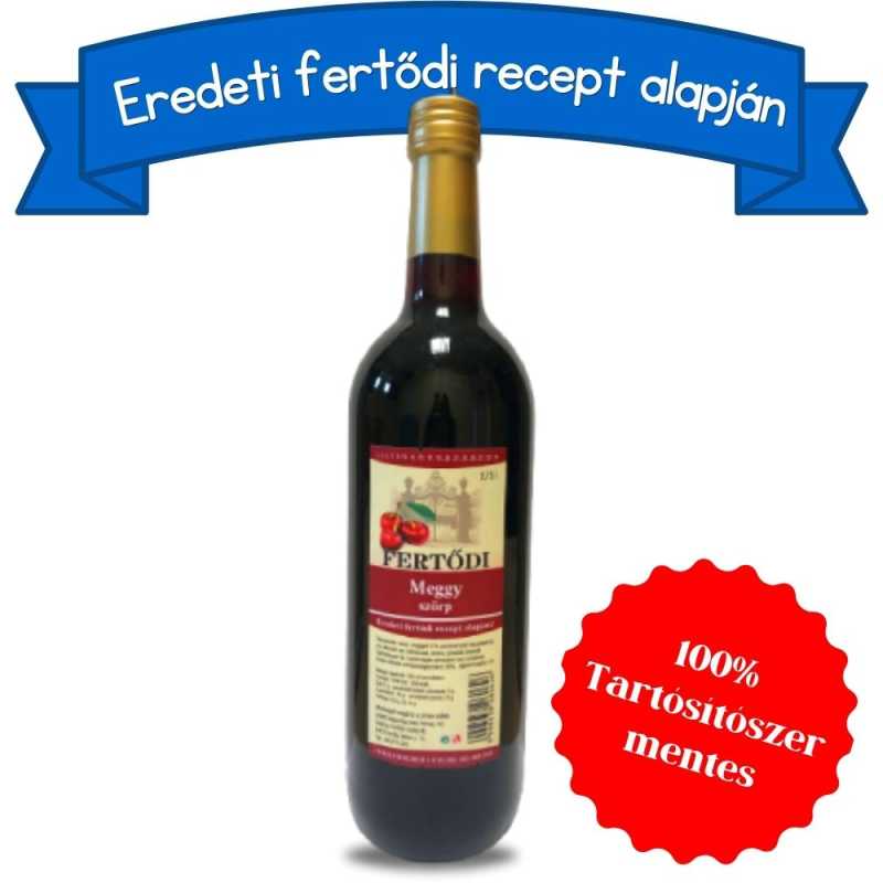 Meggy szörp, 750 ml-es ksizerelésben. Eredeti fertődi recept alapján készült, a magyar klasszikus szörpök egyike. 1:8 hígítási aránnyal. 100%-ban tartósítószer és mesterséges színezékektől mentes.
