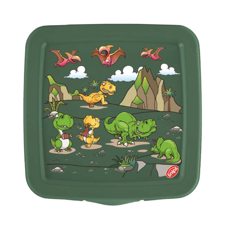 Snips 000892 dinoszaurusz mintás ételhordó doboz, 0,5 liter tárolókapacitással. Ez a praktikus tárolódoboz kitűnő választás gyermeke tízórai szendvicsének tárolására.