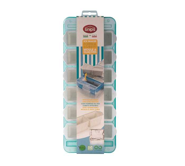 Snips 021035 jégkocka készítő, 12 db jégkocka könnyed készítéséhez, kettesével kivehető jégkocka formával. A jégkocka készítő mosogatógépben mosható. 12 darab jégkocka készítéséhez, melyek kettesével könnyedén kiszedhetők.