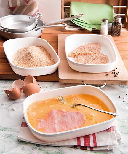 Snips 032198 műanyag panírozó szett, aminek tartalma 3 db műanyag panírozó tál. Magas fala miatt csökkenti a szennyeződést, a panírozási folyamat során.
