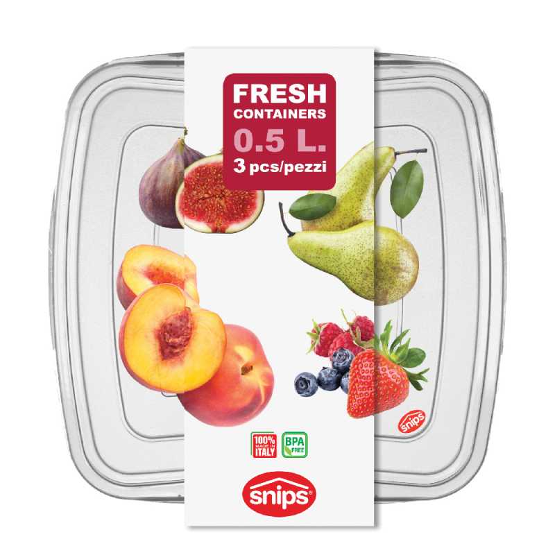 Snips frissen tartó tárolódoboz, 3 db-os szett, 0,5 literes. Fagyasztóban tárolható, mikrózható és mosogatógépben is mosható.
