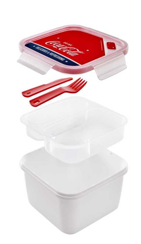 Snips uzsonnás doboz, 1.4 liter, evőeszközökkel, Coca-cola mintával