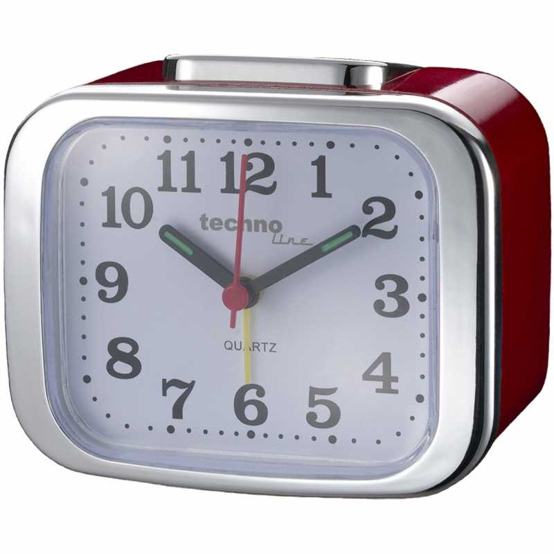 Technoline XL asztali kvarc ébresztőóra energikus piros színben. Könnyen olvasható, háttérvilágítással, csengő vagy sípoló hanggal.