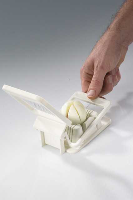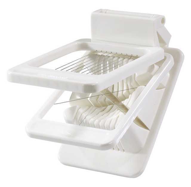 Westmark 1075 tojásszeletelő segítségével szeletelhetjük a főtt tojást vékony szeletekre vagy akár cikkekre is. Könnyen tisztítható rozsdamentes acélhuzallal.