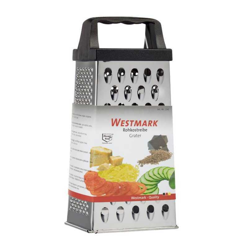 Westmark 1142 univerzális konyhai reszelő, kitűnő konyhai segédeszköz. A reszelő négy oldalú, mindegyik oldalon különböző lyukmérettel. Kiválóan és gyorsan reszelhet gyümölcsöt, zöldséget, dióféléket, kemény sajtot, csokoládét és még sok mást.