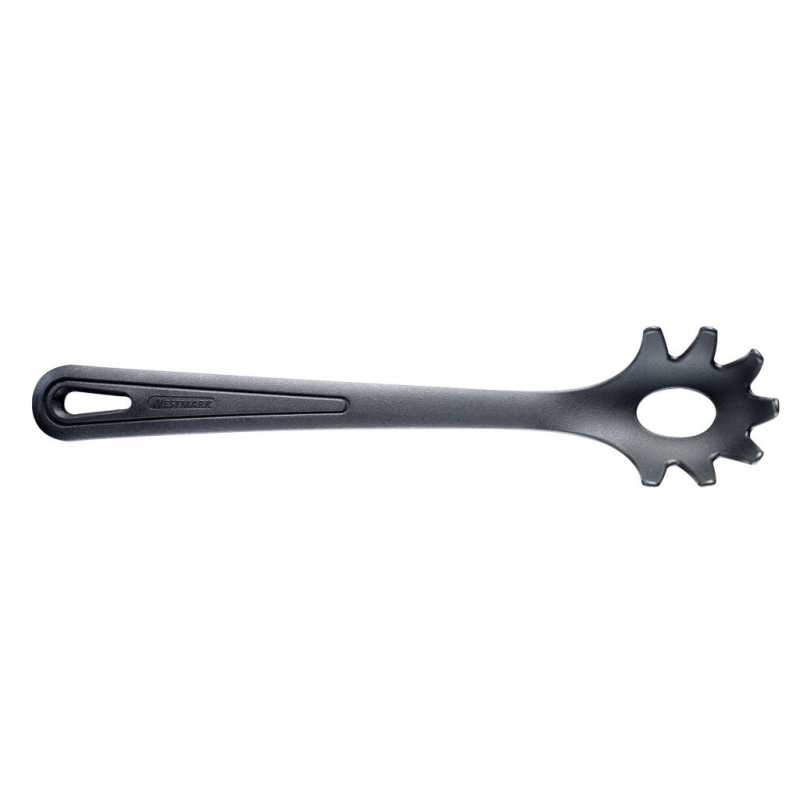 Ezzel a megbízható Westmak Gentle spagetti kanállal könnyedén elkészítheti és tálalhatja kedvence tésztáját. A kanál szélén lévő kerek fogaknak köszönhetően a tésztét könnyen kiveheti a fazékból és tálalhatja. A kanál közepén lévő lyuk segít pontosan kimérni a megfőzni kívánt száraz spagetti tészta mennyiségét.