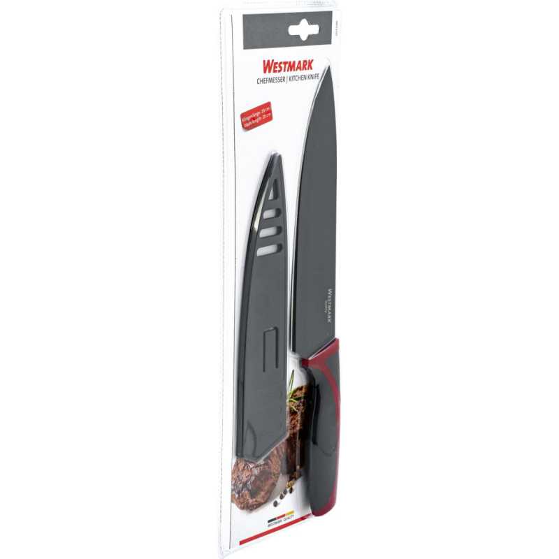 Rozsdamentes acélból készült, éles, tapadsámentes bevonatú pengéjű kés, ideális zöldségek, húsok, halak és egyéb ételek vágásához, aprításához, szeleteléséhez. A pengevédőnek köszönhetően a vágóél a fiókban védve van a lehetséges sérülésektől.