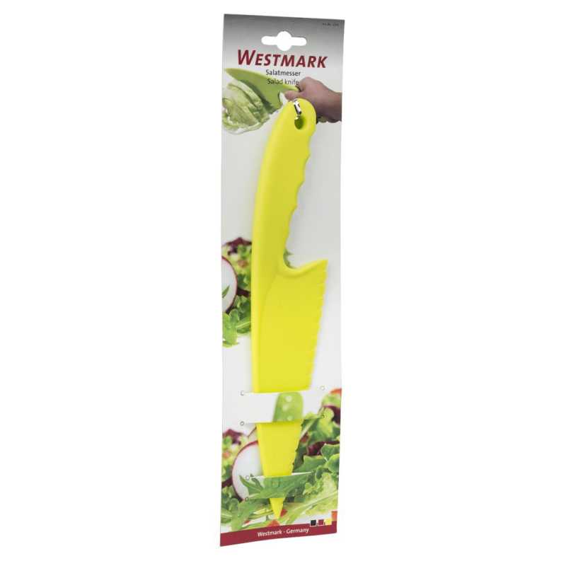 A műanyagból készült kés kifejezetten saláták felvágására, darabolására szolgál. Használatával a saláta szélei kevésbé barnulnak meg. Akár tepsis sütemények vágásához is használható.