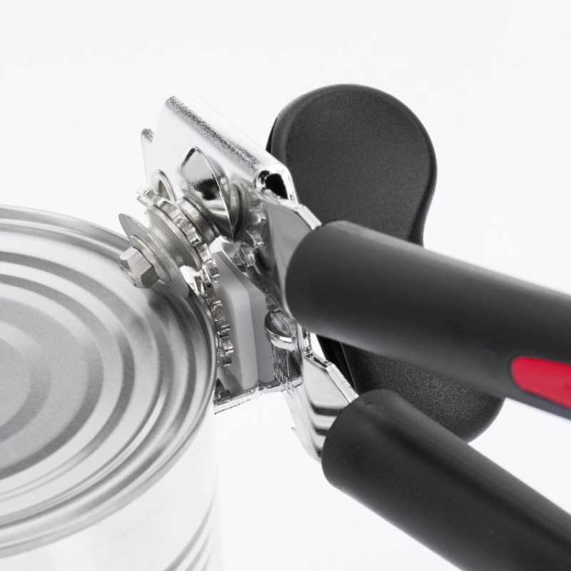 A Westmark Gallant konyhai eszközsorozatának konzervnyitójával könnyedén nyithatja ki a konzervdobozokat a könnyen gördülő kialakításának köszönhetően. Extra szélesre nyitható fogantyúi biztosítják, hogy könnyen felhelyezhető legyen a konzervdoboz peremére. Az edzett vágókorongot két rugós fogaskerék hajtja, így tökéletesen igazodik a peremhez. A kupakemelővel gyorsan és egyszerűen nyithatja ki a koronás kupakkal ellátott palackokat is.