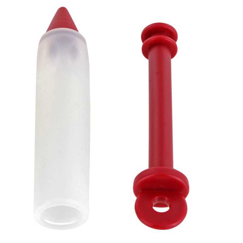 A személyesebb utolsó simításokért! Készítsen lélegzetelállító mintákat süteményeire vagy írjon egy kedves üzenetet, mondjuk „Boldog születésnapot!” vagy „Jó étvágyat!” a tányérok szélére., így a sütemények, levesek vagy más ételek még jobban fognak esni barátainak, családjának, vendégeinek. A szilikon díszítő tollal nagyszerű, stílusos díszítéseket készíthet olvasztott csokoládéval, cukormázzal vagy mártással muffinokon, desszerteken és más ételeken. Használat után a toll könnyen, mosogatógépben mosható, kompakt méretéből kifolyólag pedig helytakarékosan tárolható akár egy konyhai fiókban.