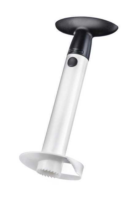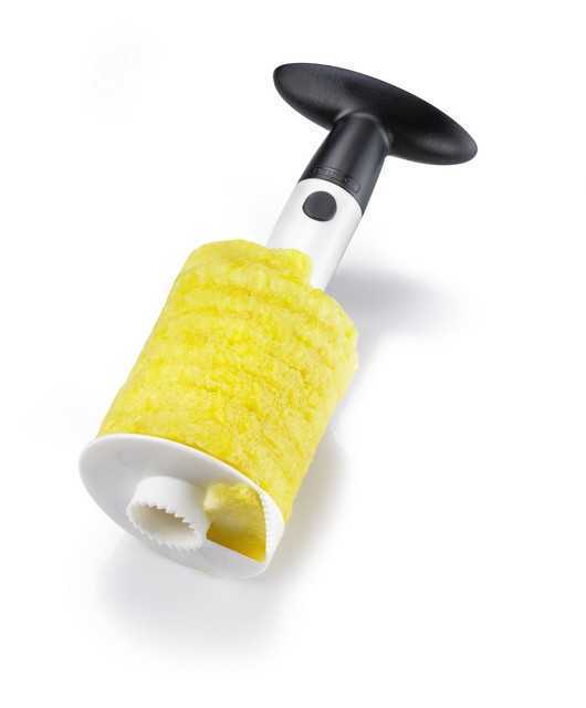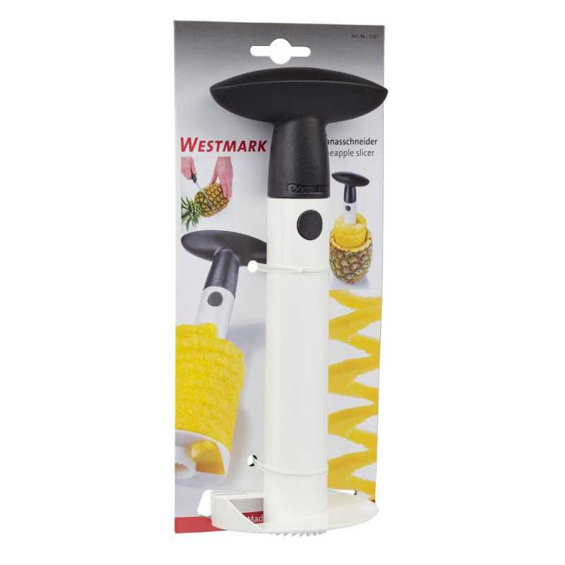 A praktikus ananász szeletelő egyetlen egyszerű lépésben kimagozza, meghámozza és felszeleteli az egész gyümölcsöt a finom gyümölcssalátákhoz, gyümölcstálakhoz, desszertekhez és müzlikhez. A szeletelőt az ananászba csavarva spirálisan vághat bele a gyümölcshúsba, miközben egyidejűleg a magokat is eltávolítja. A strapabíró műanyagból készüt, éles, fogazott vágókarika megkönnyíti az ananász átlyukasztását és kivájását. A frissen vágot spirálból tálalásra kész szeleteket készíthet.