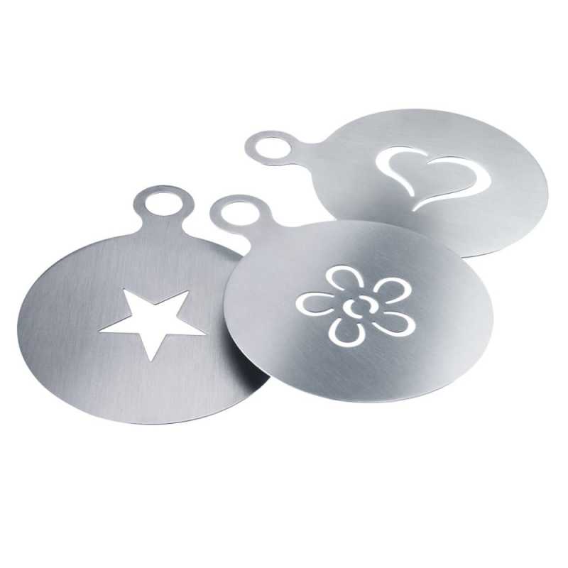Westmark 62862260 capuccino díszítő sablon, 3 db, különböző mintákkal. Könnyen tisztítható rozsdamentes acélból, egyszerű motívumok elkészítésére alkalmas.