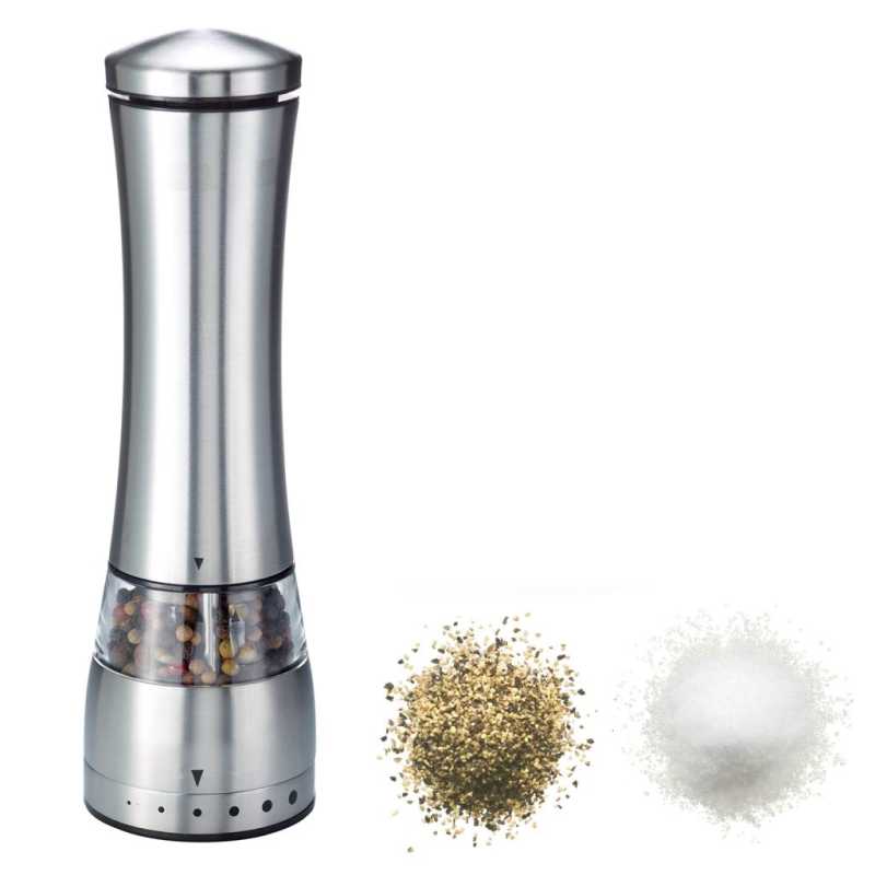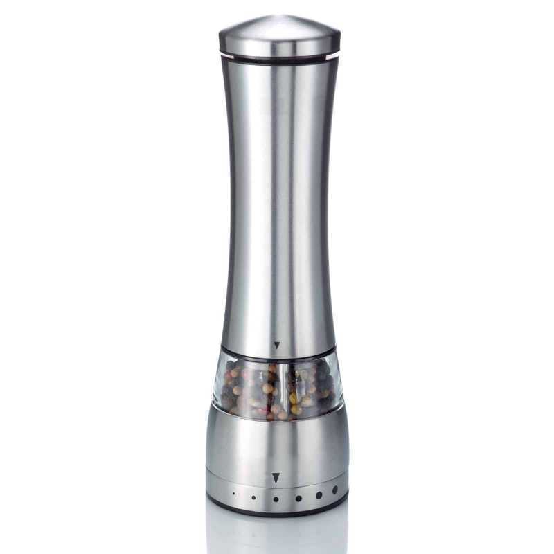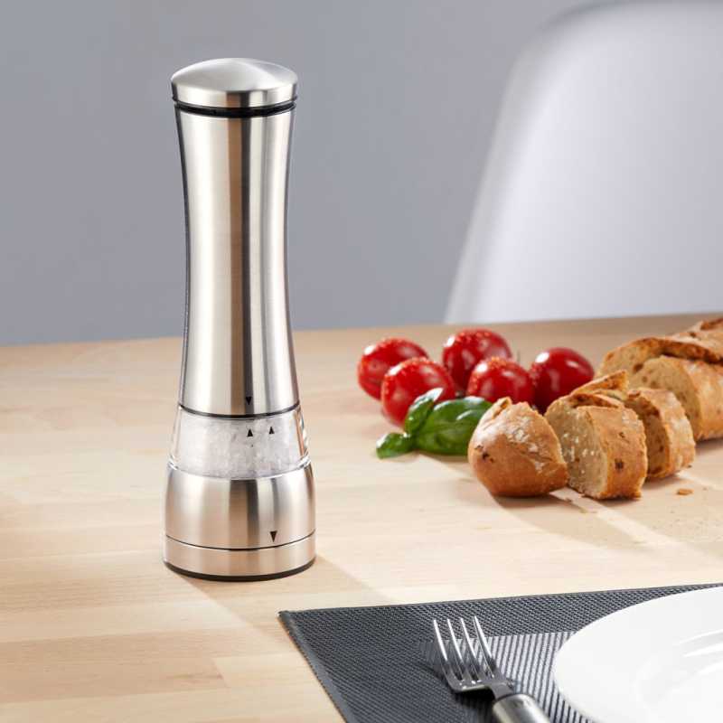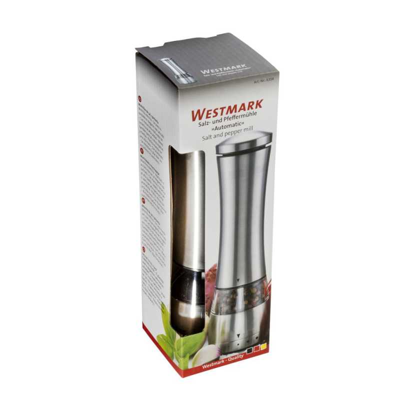 A tökéletes utolsó simításért! A pontos fűszerezés és ízesítés talán a legfontosabb szempont a kifejezetten ízletes ételek elkészítéséhez. A Westmark elektromos só- és borsőrlővel ez gyerekjáték, robosztus kerámia őrlőszerkezetének köszönhetően. A nagy nyomógomb lehetővé teszti a könnyű, egykezes kezelést. Az őrlő világítással is rendelkezik (6x AAA elemre van szükség, a csomag NEM tartalmazza). Elegáns kialakításának köszönhetően az őrlő bármilyen asztali dekorációhoz illik.