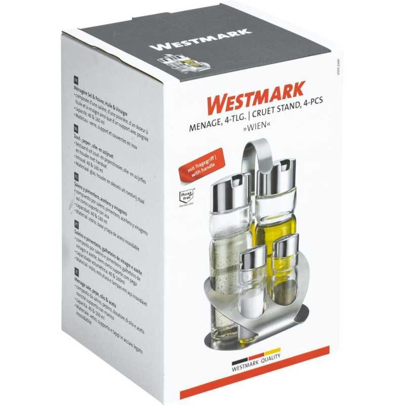 Westmark 65052260 fűszertartó szett, olaj, ecet, só és bors tartó, állvánnyal