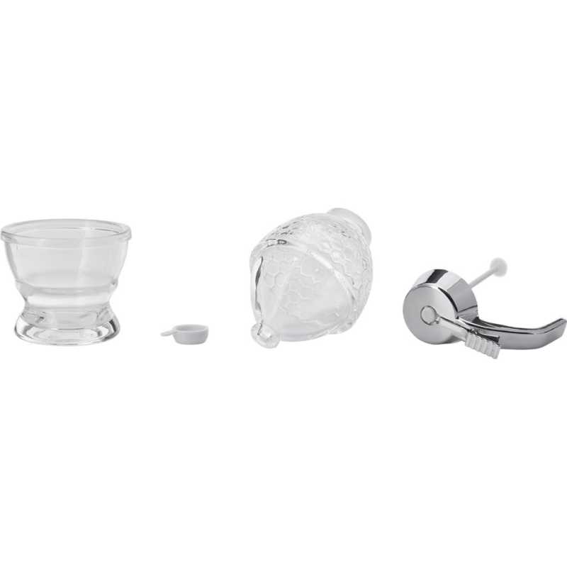 A Westmark körte alakú, szemet gyönyörködtető méhsejtmintás mézadagoló lehetővé teszi a folyékony méz egyszerű és pontos adagolását. Ezzel az adagolóval megédesítheti a teát, kenyeret, müzlit vag a túrót; az adagolókarral ellátott fogantyúnak köszönhetően a mézkörte egy kézzel is működtethető. A rugós nyitó- és zárórendszer biztosítja a méz pontos adagolását és kimérését. Az üveg talp dekoratív tárolóhelyet biztosít és gondoskodik arról, hogy az asztal kiömlésmentes maradjon.