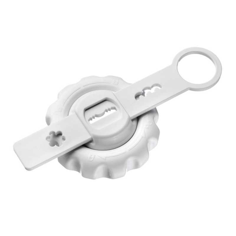 Tartozék: 2 eltérő méretű tárcsa, kés, sütemény kinyomó, adagoló